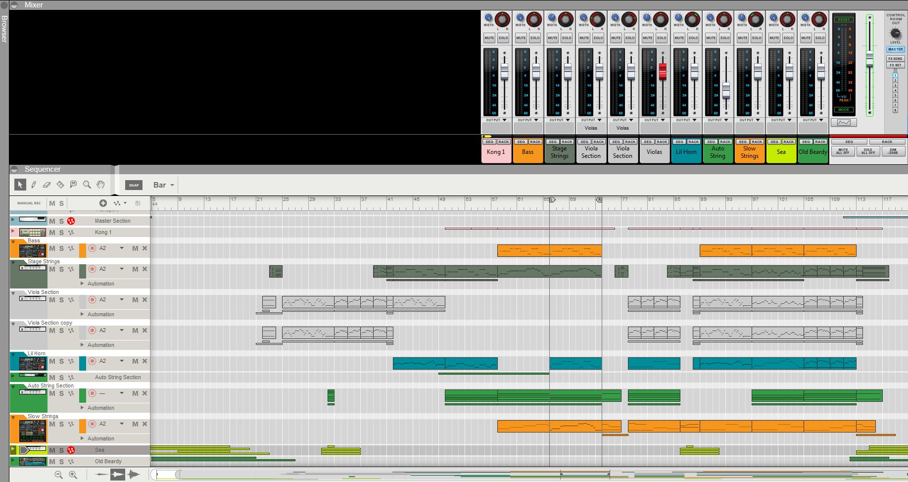 I’m listening to “Wynton Marsalis & Eric Clapton play the blues”. Everything is nice and clear. I don’t really get the music, Jazz is beyond me, but these guys are organized (and damned good). They have a structure and play within that and it lets them wail. You need a structure that lets you do that that. Often that is about the only real difference between a good player and an unknown. I use a structure in my projects. Let’s have a look-see at a recent track called “Paganini On The Poop Deck”