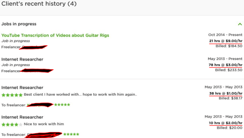 Notice the 5-star reviews from Freelancers. You could be forgiven for thinking that I am wrong and Upwork really is a worker’s paradise where clients & freelancers skip through conceptually creative business arrangements of mutual honesty & benefit.