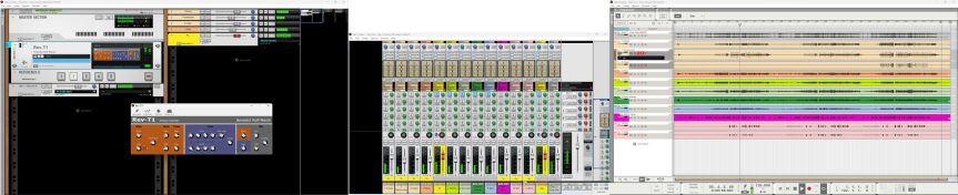Probably the biggest issue I felt I faced with this material at the time was the drum kit which was tracked with that one mic from behind Jake’s head. This made it focus more on the hi-hat than the snare or kik. Combined with other factors including Jake has never played drums – he had one lesson to get this done! – delivered a sound that is quite unlike the more separated hits we are all used to in DAWville. Still, thinking of records like “Running On Empty” where drums were sometimes a cardboard box, I simply looked for how to deliver the illusion that people need to feel the story in the songs. In hindsight, I think I worried too much about that as the songs always balanced in the end. I put this down to doing my job by staying focused on the songs and their message.